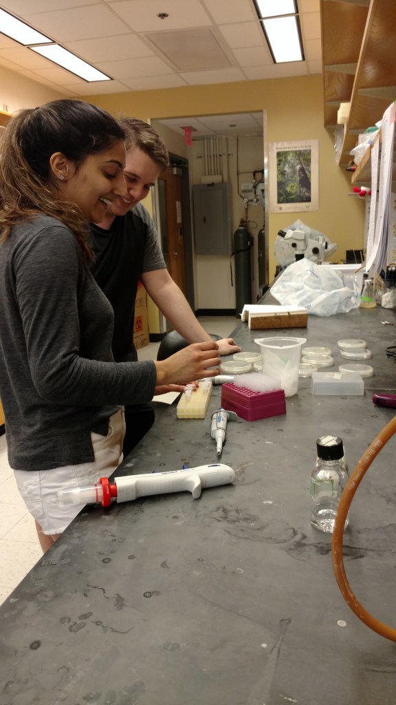 Kayla Stoy: 2012-2014; Indiana University, honors thesis student (recipient of Outstanding Honors Thesis Award). Kayla and I co-authored two publications together (Evolution 2015, JEB 2018), and she wrote a lay summary about our work for ScienceBreaker. Kayla was an NSF-GRFP graduate student with Nicole Gerardo and Levi Morran at Emory University doing great work on bacterial mutualists of insects, then a PRFB fellow in Will Ratcliffe’s lab at Georgia Tech. Now an assistant professor at Florida State! See her lab website here.