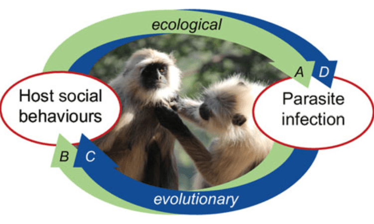 Read more here: DM Hawley, AK Gibson, AK Townsend, ME Craft, and JF Stephenson. 2020. Bidirectional interactions between host social behaviour and parasites arise through ecological and evolutionary processes. Parasitology. In press. link
