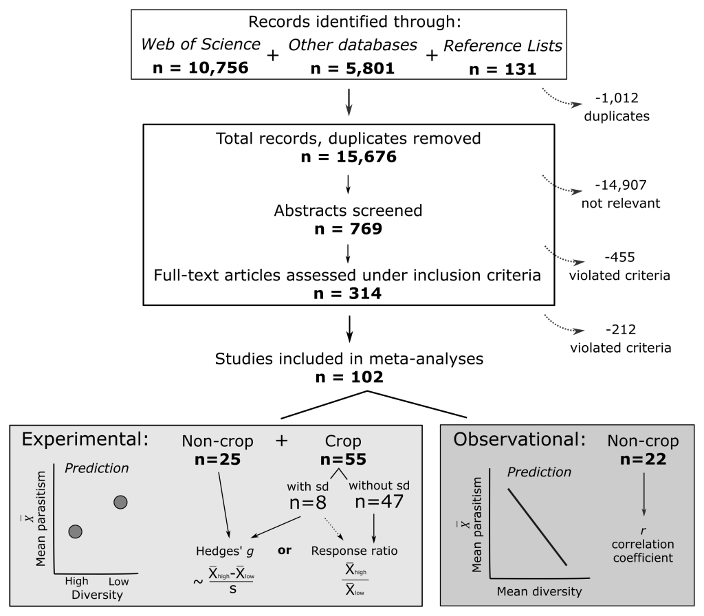 We (Mandy and third-year UVA undergraduate Anna Nguyen) just published a study in Evolution Letters! We conducted a series of meta-analyses to test the hypothesis that host populations with reduced genetic diversity experience increased burdens of parasites relative to genetically diverse host populations. The results show that experimental increases in genetic diversity reduce parasitism by 20% in non-crop hosts and by 50% in crop hosts! You can read a blog post all about the article here.